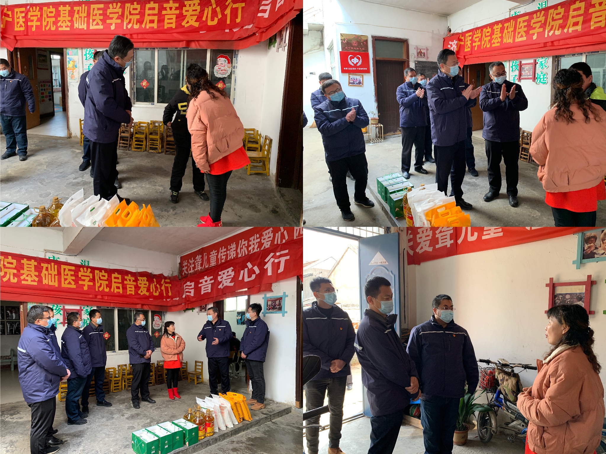 活動中,黨支部班子與康復中心張校長進行了親切交談,詳細傾聽了學校建設的基本情況、孩子們的身體狀況及學習教育情況,并為在這里進行康復訓練的聽障兒童送來了米、面、油、奶等慰問品。張校長介紹,每天她都會根據(jù)孩子們的理解和認知能力,進行教學指導,幫助他們能夠簡單的與人溝通、交流。雖然有助聽器的幫助,但孩子們的聽力效果還是不太理想。因此,在教學過程中需要反復、大聲進行多次的學習和練習,我的嗓子經(jīng)常都處于沙啞狀態(tài),總以為是我在陪伴孩子,但十幾年下來才發(fā)現(xiàn)是孩子在陪伴我,相處時間久了,這份親情與責任讓我愈發(fā)離不開他們。感謝四和供熱黨員們的這份愛心,真的很感動,原來感覺都是自己在單槍匹馬的做這份工作,看到你們這些社會愛心人士都很關注這些孩子們,感覺自己不孤單了。
