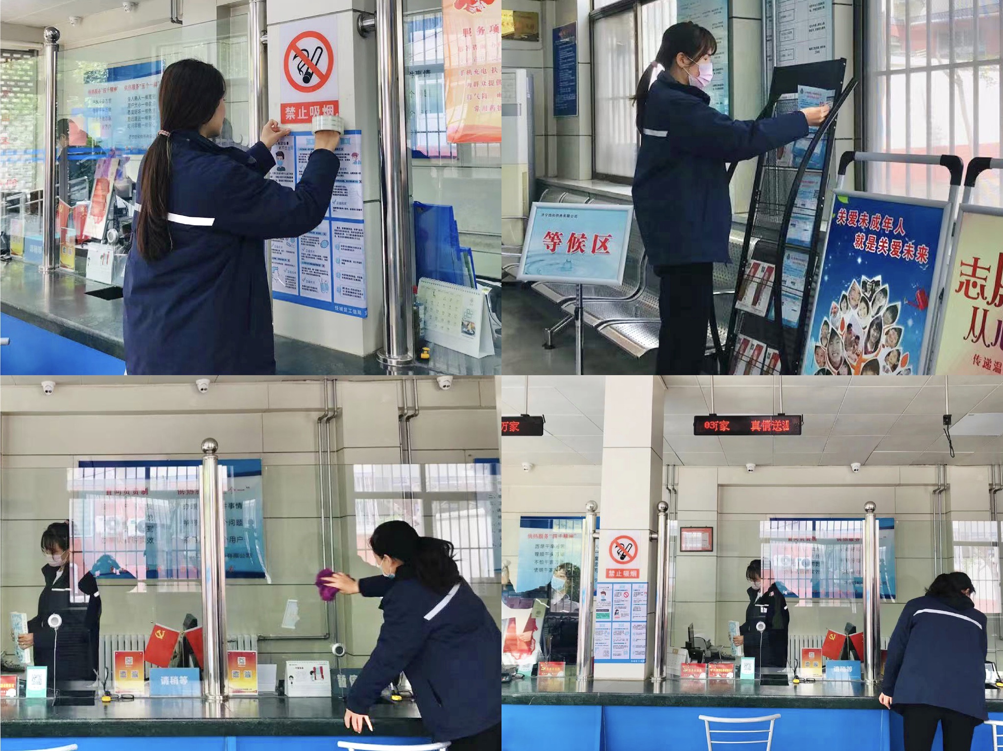 為認(rèn)真落實市委、市政府關(guān)于“創(chuàng)城”各項工作安排和部署,進一步鞏固提升濟寧市創(chuàng)衛(wèi)成果,確保窗口單位營業(yè)網(wǎng)點創(chuàng)城任務(wù)全面落實。近日,濟寧四和供熱有限公司各營業(yè)廳陸續(xù)開展衛(wèi)生清掃工作,切實做好日常保潔、落實門前三包責(zé)任,為濟寧市迎接國家衛(wèi)生城市復(fù)審貢獻四和力量。