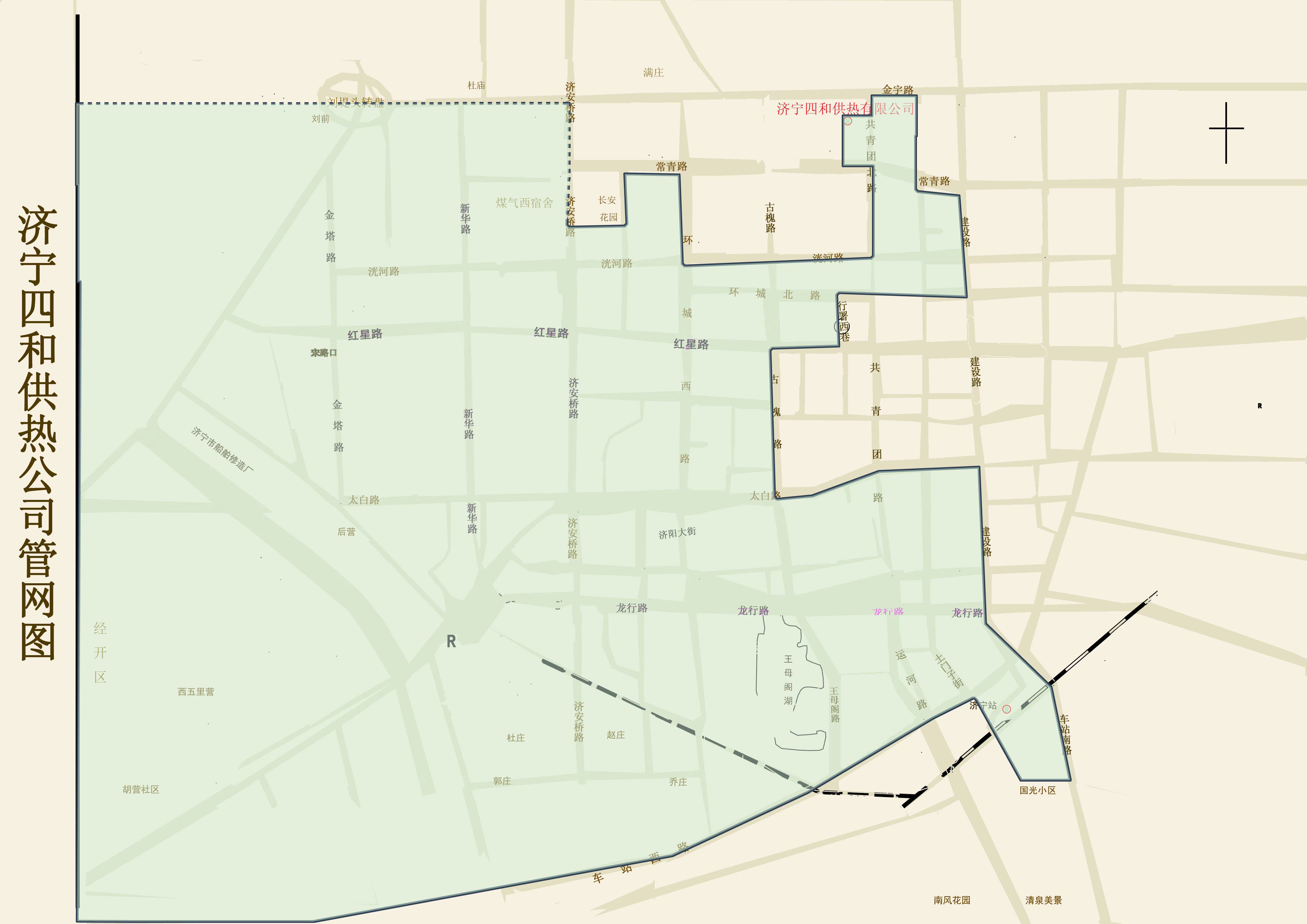 根據(jù)濟寧市供熱規(guī)劃及現(xiàn)供熱實際,四和供熱公司供熱區(qū)域為: